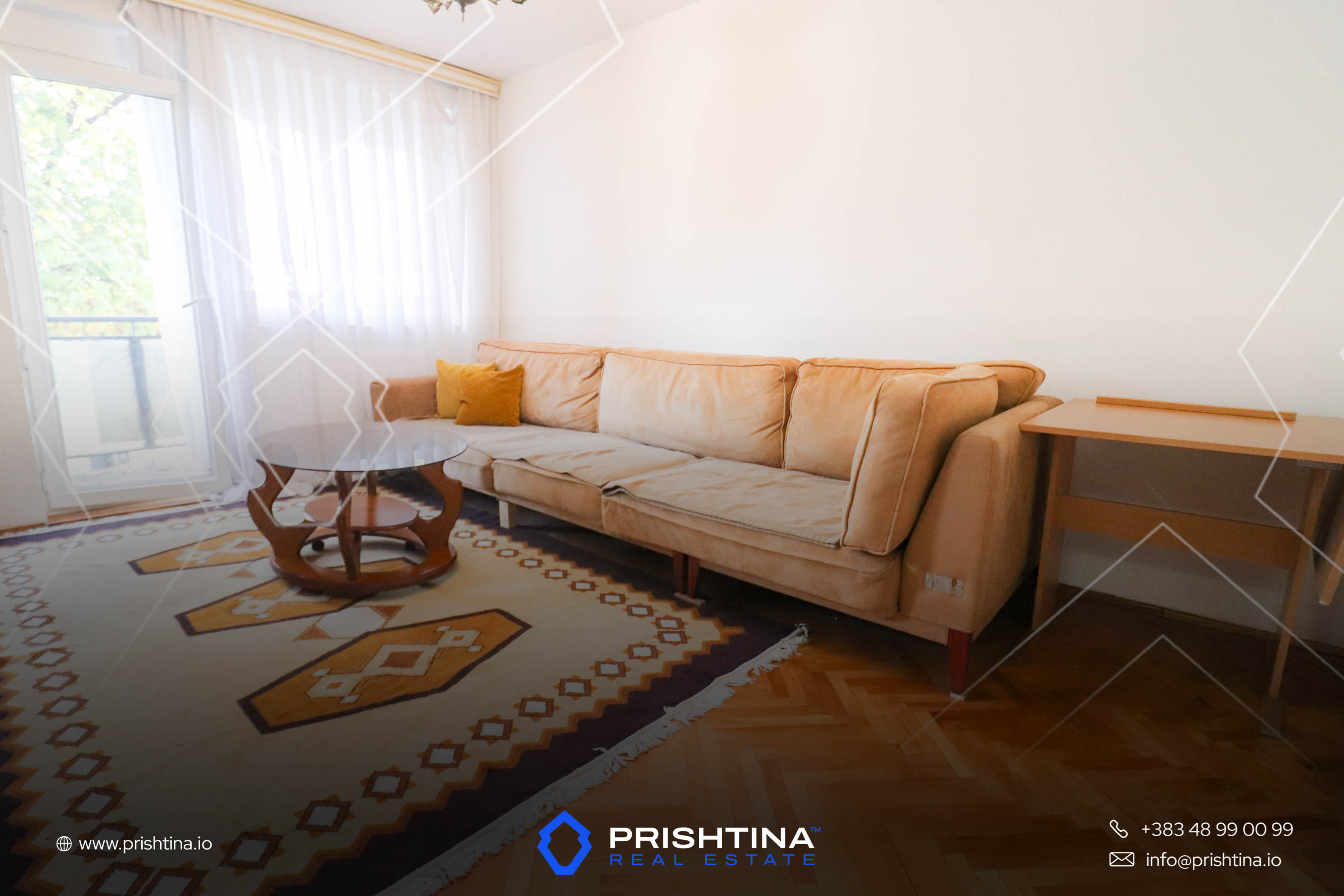 Banesa ndodhet në Ulpianë, në rrugën Dëshmorët e Kombit – një prej zonave më të qeta dhe më të kërkuara për banim, me afërsi të qendrës, institucioneve publike dhe marketeve. Banesa posedon ngrohje me Termokos.